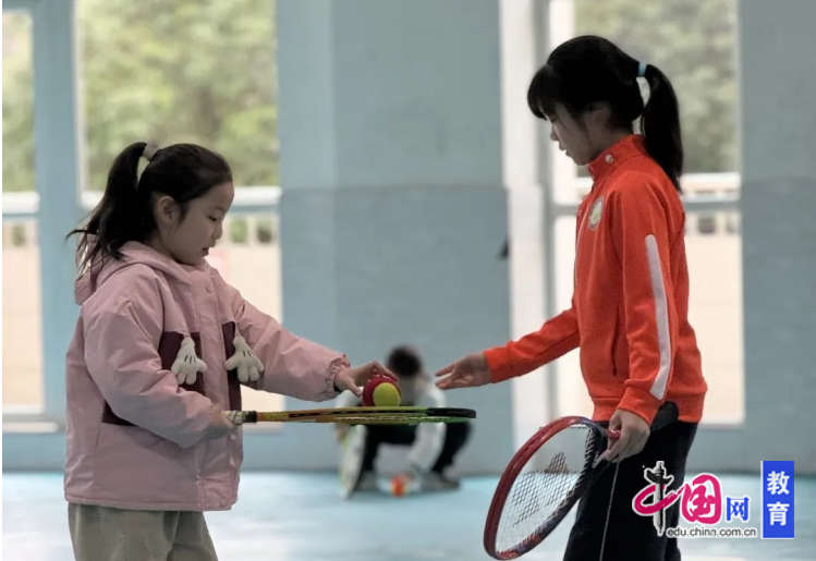 体育馆中,幼儿们观摩并体会了成都市武顺街小学特征网球课程。教练与网球队的学生展现了一场精彩网球课,每一次的挥拍和奋斗都赢得了孩子们的喝彩和掌声。小朋友们参加讲堂,体会网球课带来的欢喜,带着收成高兴合影,定格夸姣。